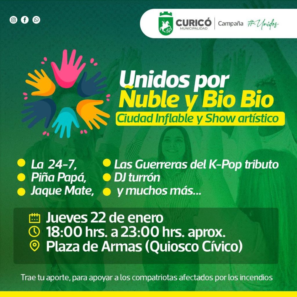 Gran espectáculo solidario está preparando la Municipalidad de Curicó para este jueves 22 desde las 18:00 hrs en la plaza de armas.
