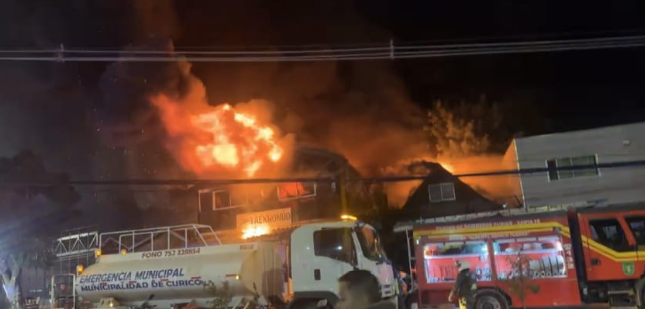 Voluntarios y carros de distintas compañías del Cuerpo de Bomberos en Curicó se movilizaron al inicio de esta madrugada, hasta el sector cercano al estadio La Granja, en uno de los costados del cerro Condell, a metros de la avenida Freire, para enfrentar un violento incendio que destruyó una academia de artes marciales y afectó a un par de viviendas.